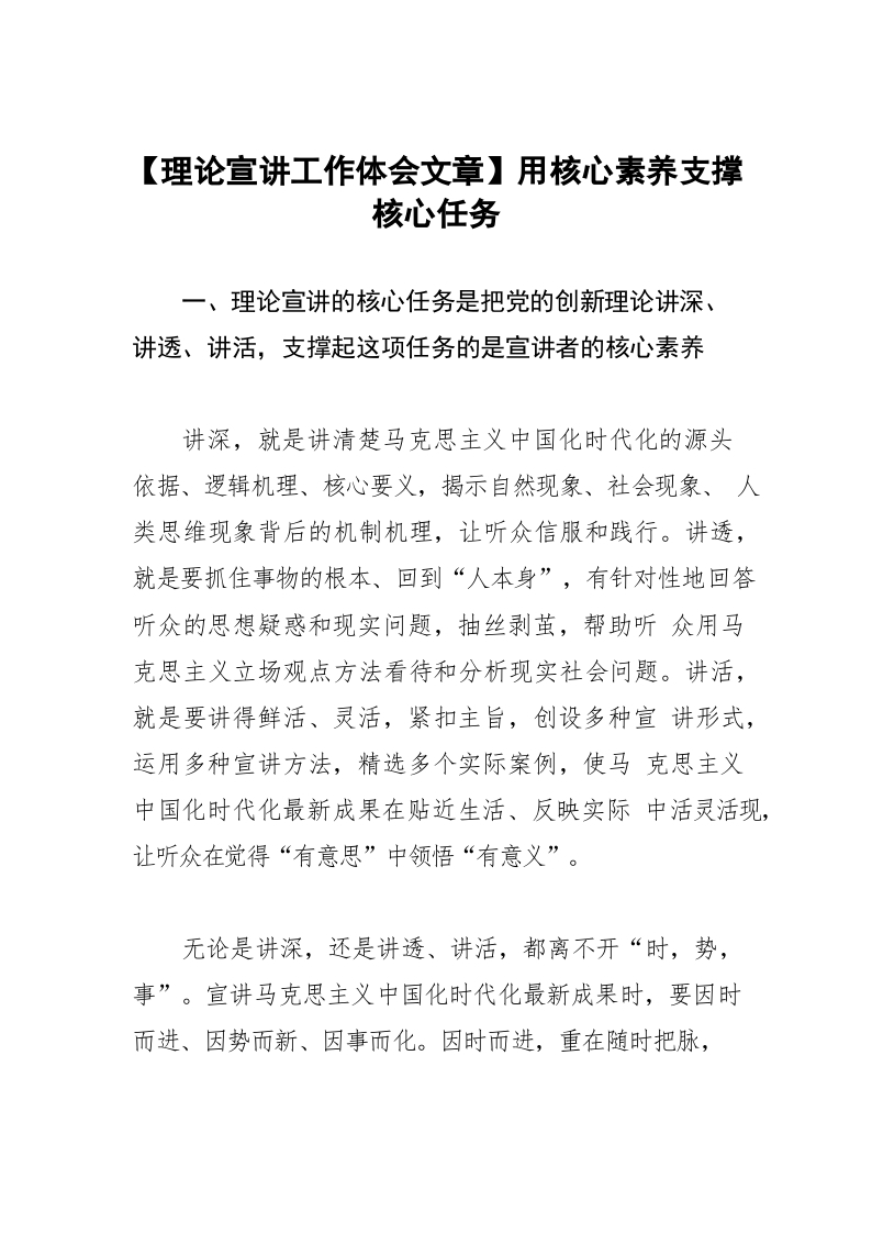 【理论宣讲工作体会文章】用核心素养支撑核心任务