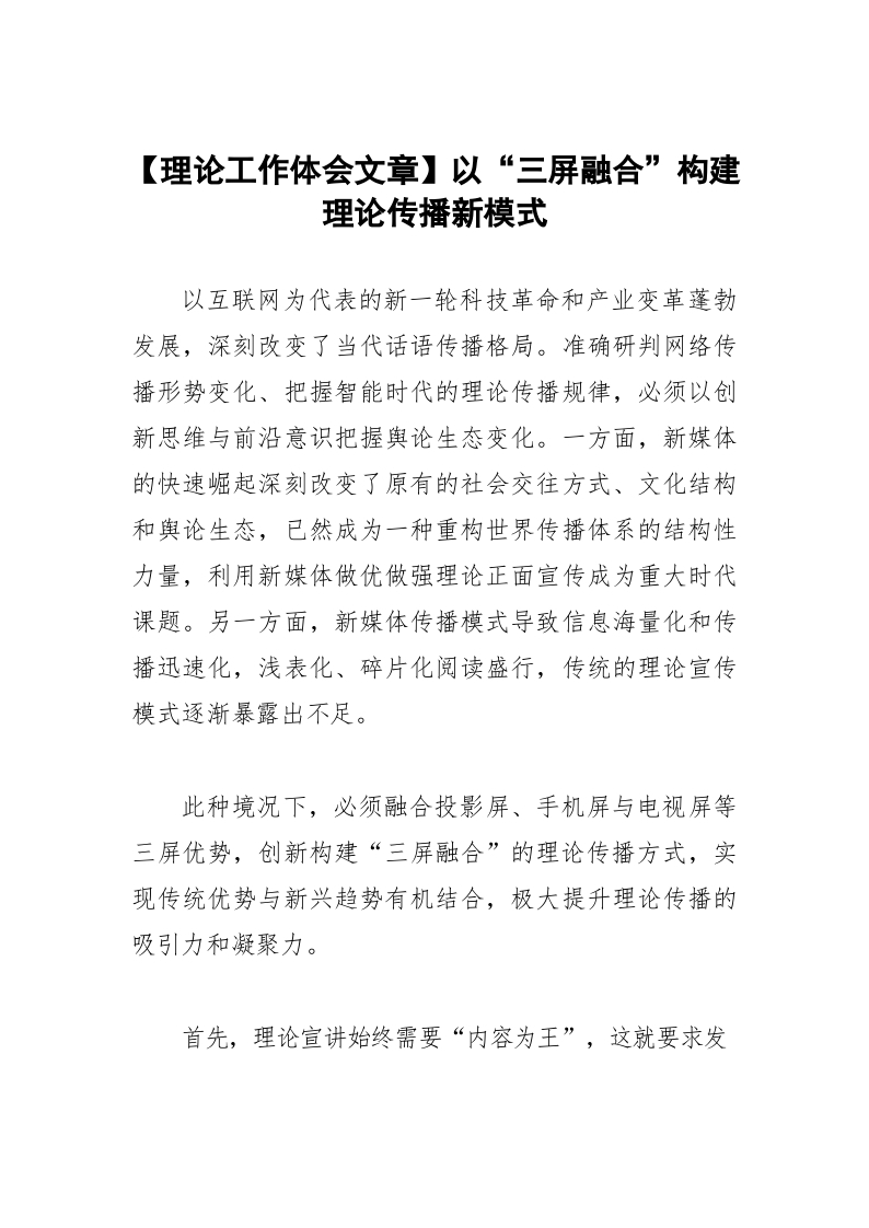 【理论工作体会文章】以“三屏融合”构建理论传播新模式