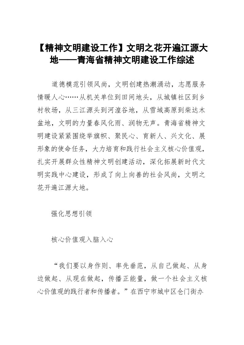 / 【精神文明建设工作】文明之花开遍江源大地——青海省精神文明建设工作综述