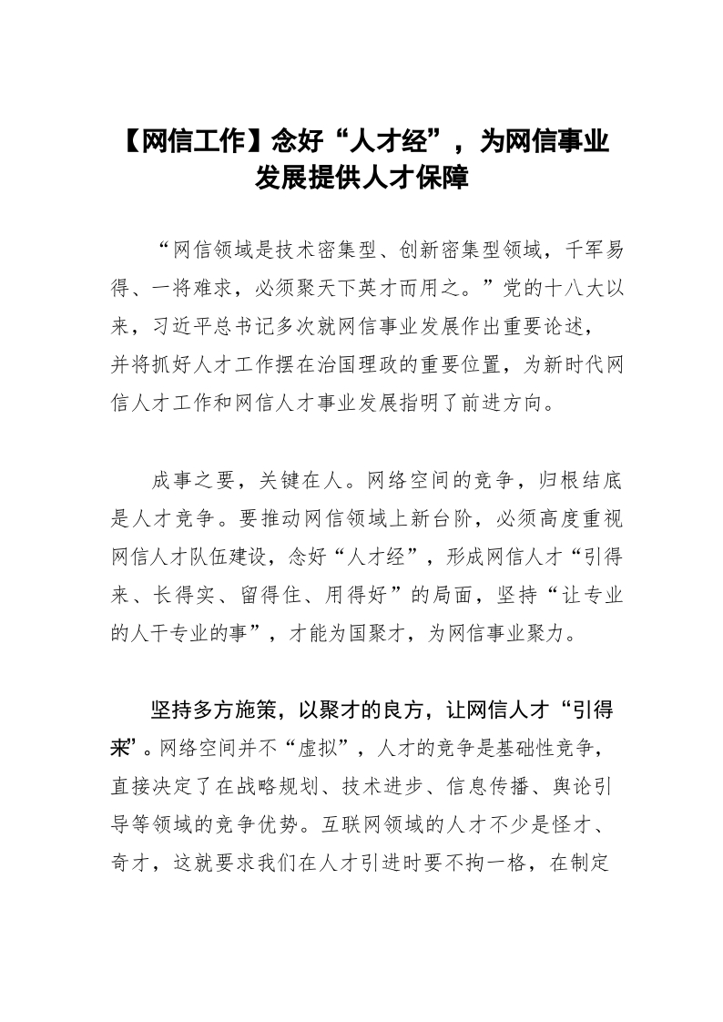 / 【网信工作】念好“人才经”,为网信事业发展提供人才保障