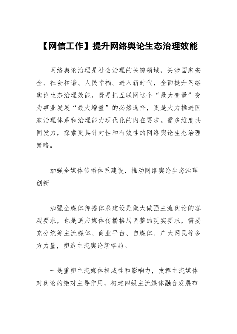 / 【网信工作】提升网络舆论生态治理效能