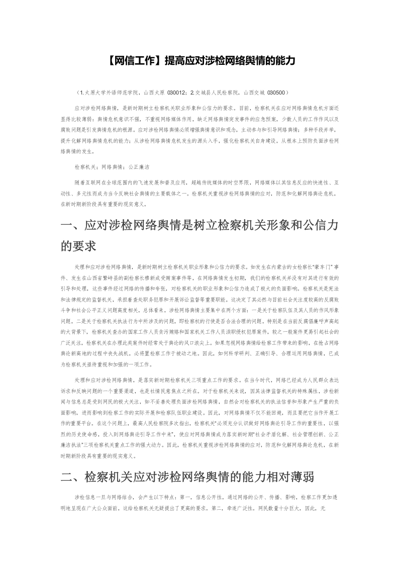 / 【网信工作】提高应对涉检网络舆情的能力