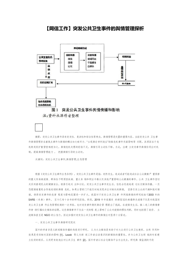 / 【网信工作】突发公共卫生事件的舆情管理探析