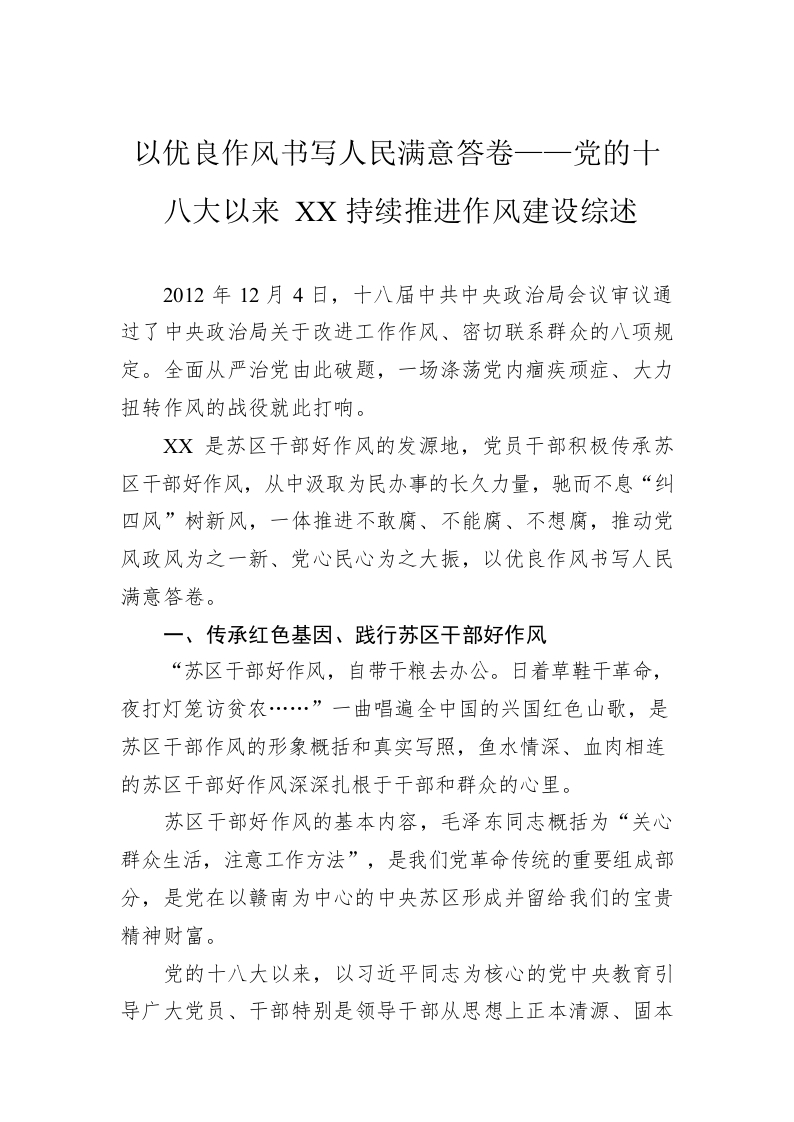 / 以优良作风书写人民满意答卷——党的十八大以来XX持续推进作风建设综述(20220929)