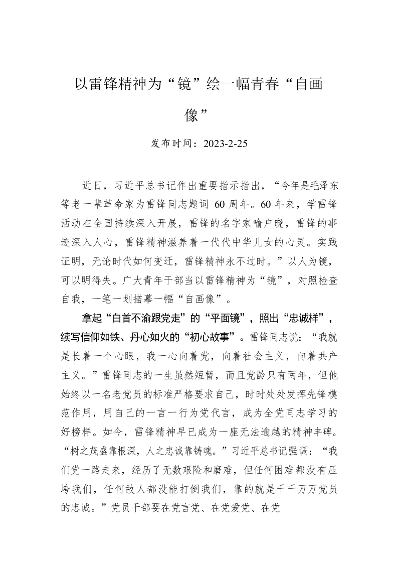 以雷锋精神为“镜”绘一幅青春“自画像”