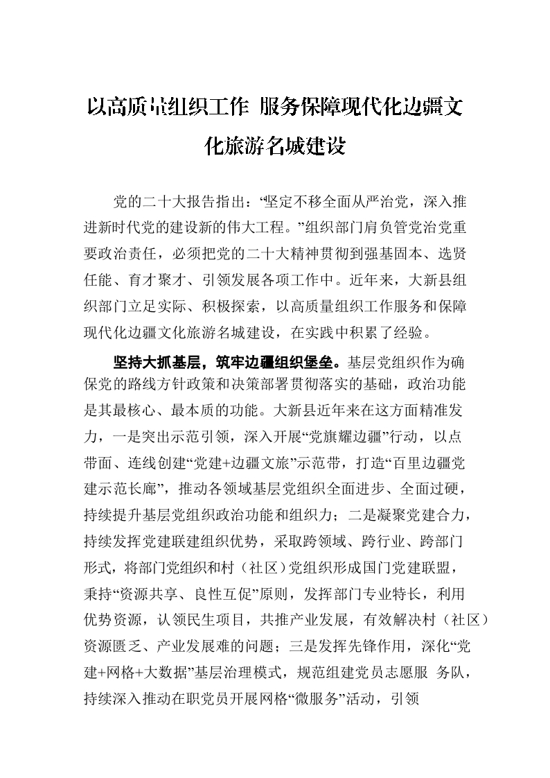/ 以高质量组织工作 服务保障现代化边疆文化旅游名城建设(20230807)