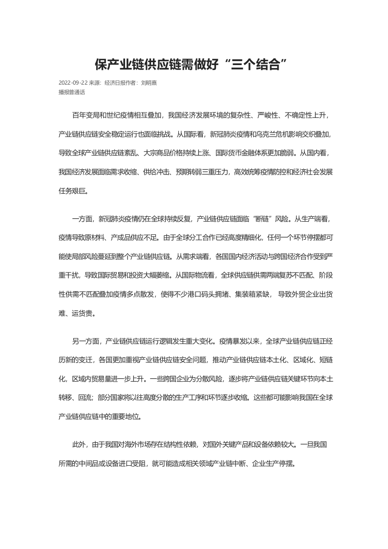 / 保产业链供应链需做好“三个结合”