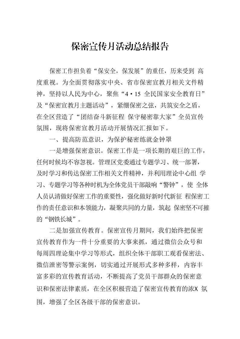 保密宣传月活动总结报告