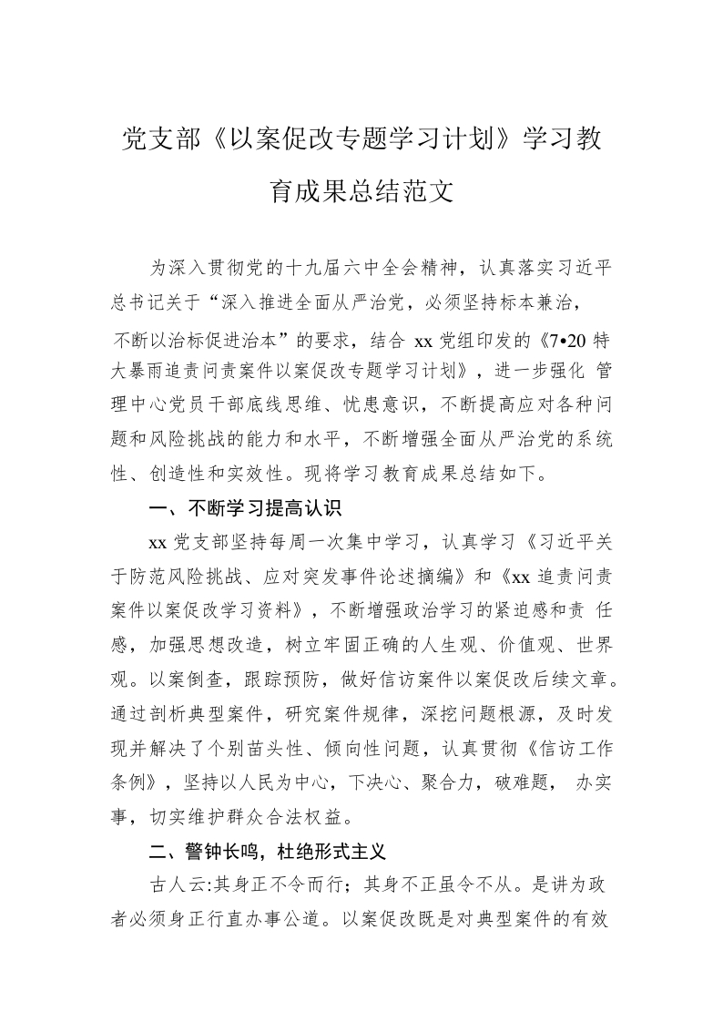 党支部《以案促改专题学习计划》学习教育成果总结范文