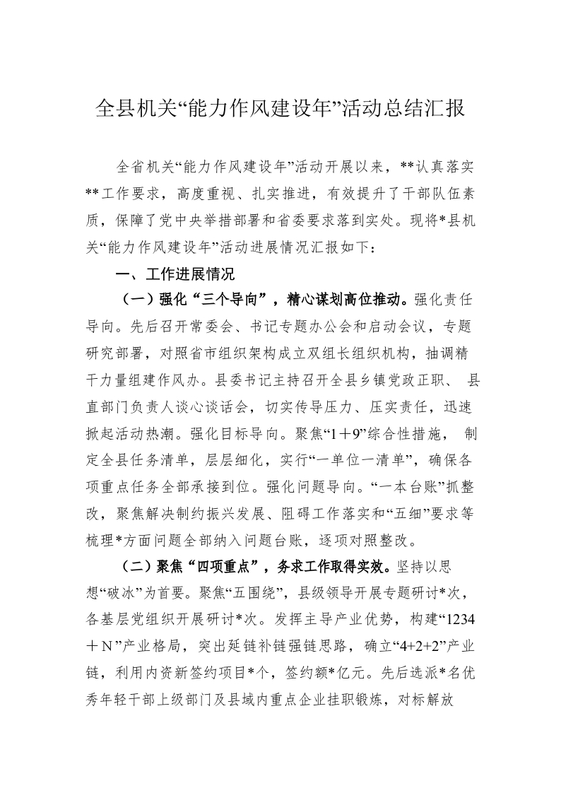 全县机关“能力作风建设年”活动总结汇报