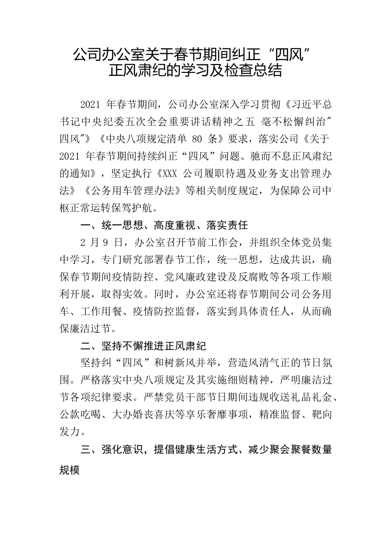 / 公司办公室关于春节期间纠正“四风”正风肃纪的学习及检查总结