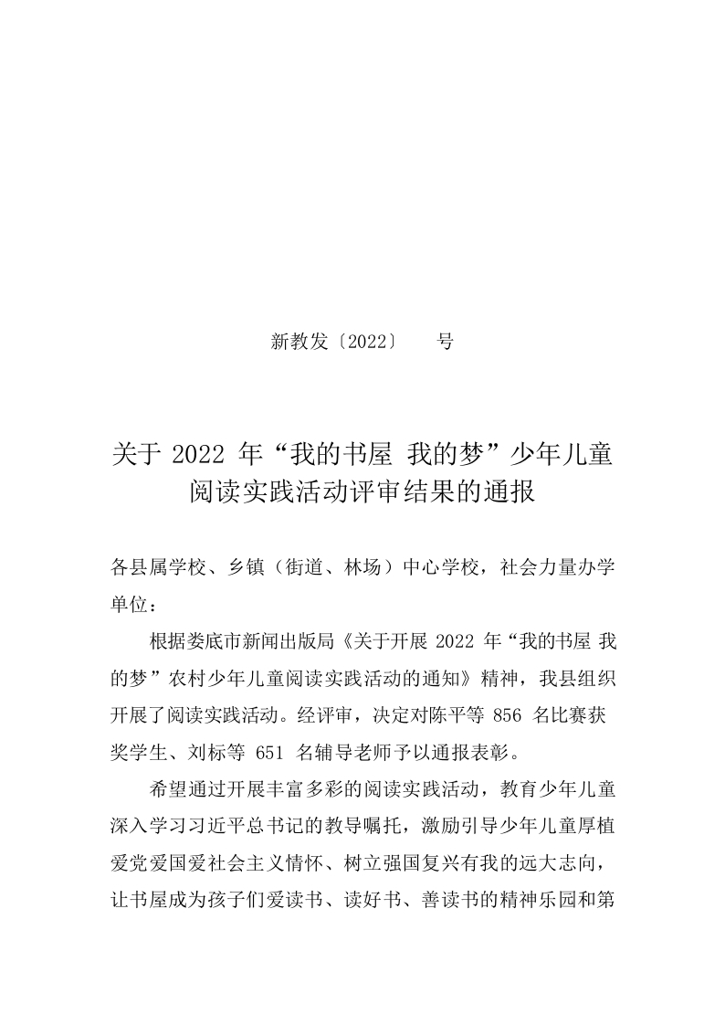 / 关于2022年“我的书屋 我的梦”少年儿童阅读实践活动评审结果的通报