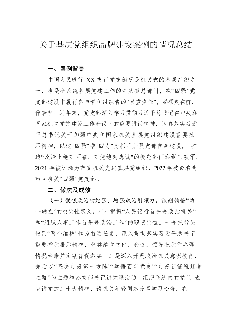 / 关于基层党组织品牌建设案例的情况总结