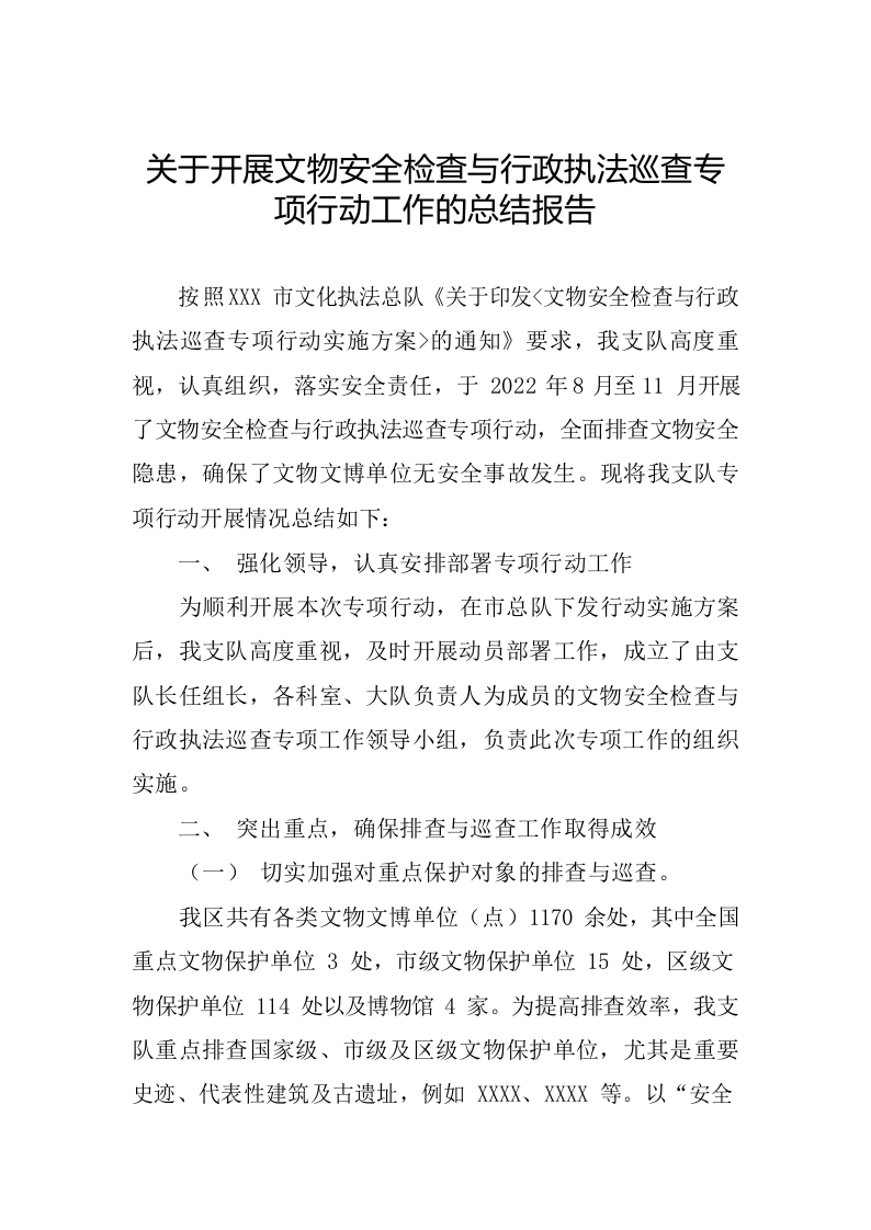 / 关于开展文物安全检查与行政执法巡查专项行动工作的总结报告