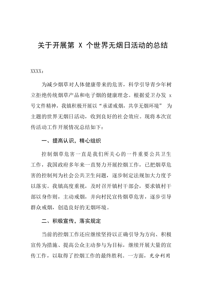 / 关于开展第X个世界无烟日活动的总结