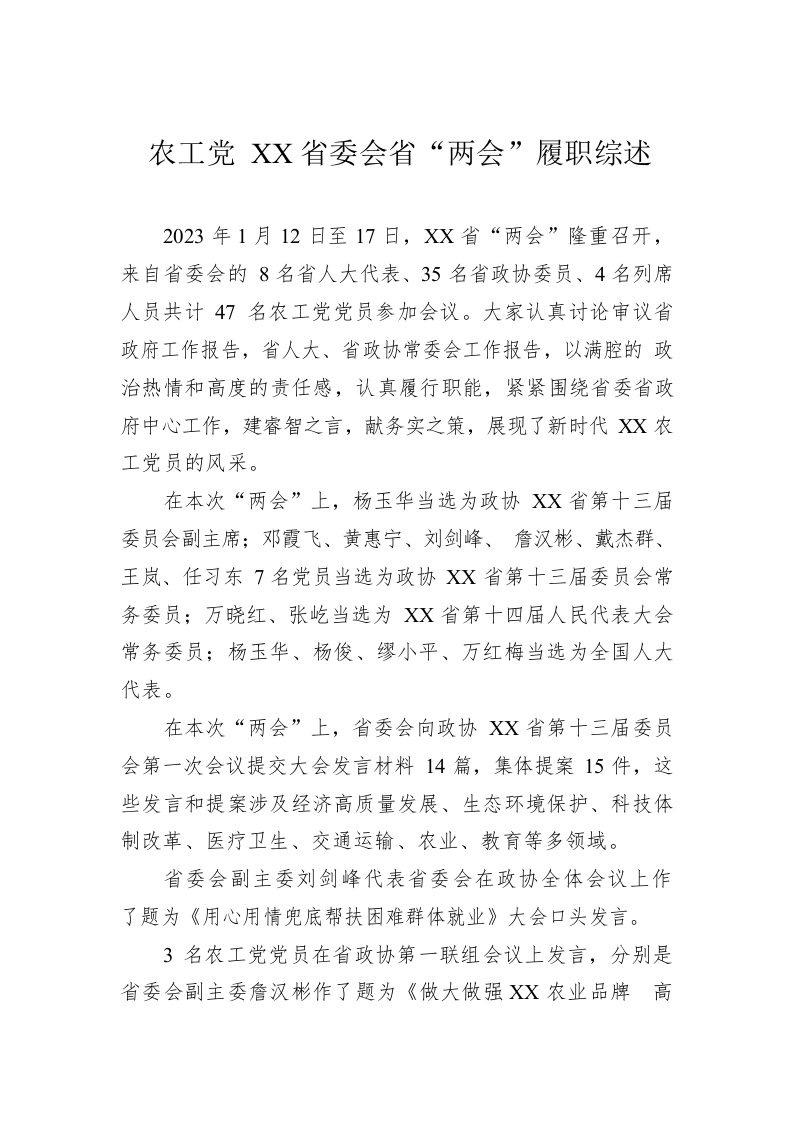 / 农工党XX省委会省“两会”履职综述(20230118)