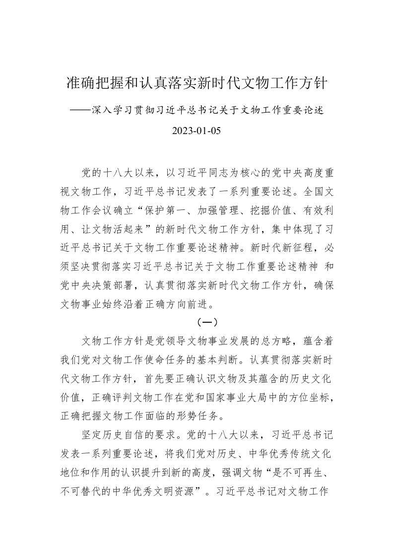 / 准确把握和认真落实新时代文物工作方针——深入学习贯彻习近平总书记关于文物工作重要论述