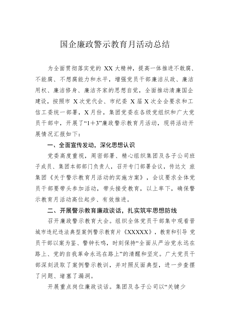 / 国企廉政警示教育月活动总结