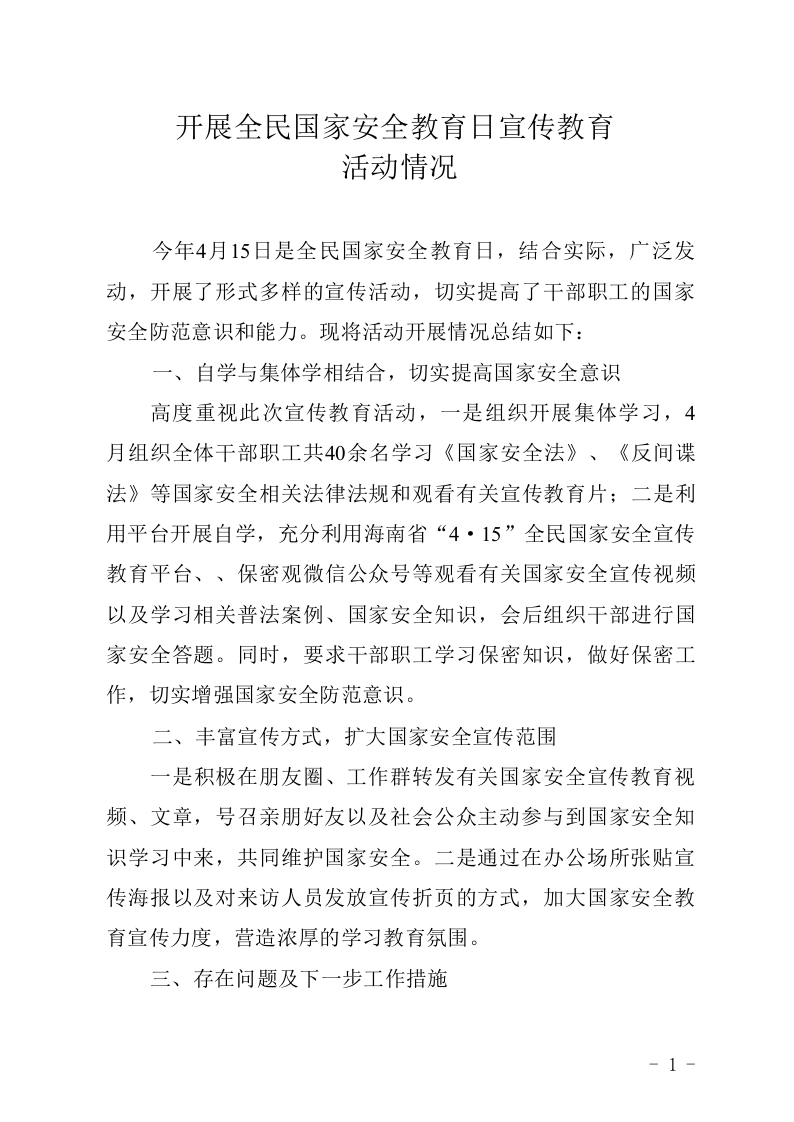 / 国家安全宣传教育总结