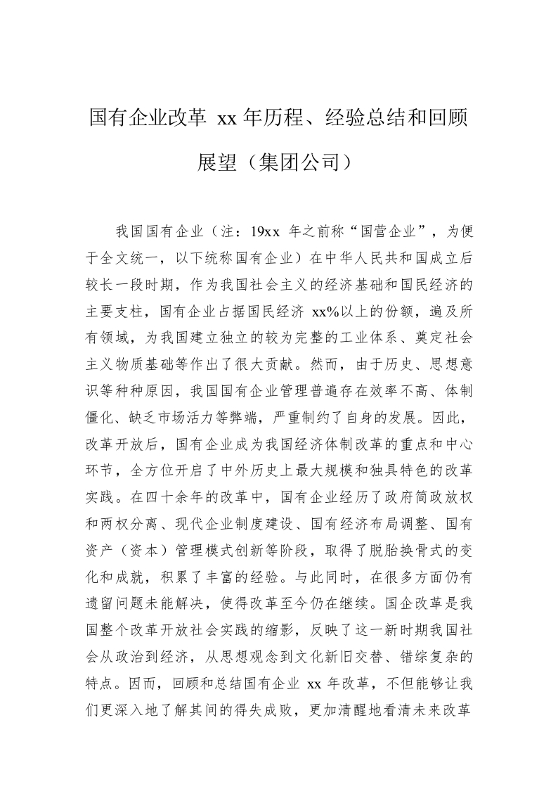 / 国有企业改革xx年历程、经验总结和回顾展望(集团公司)