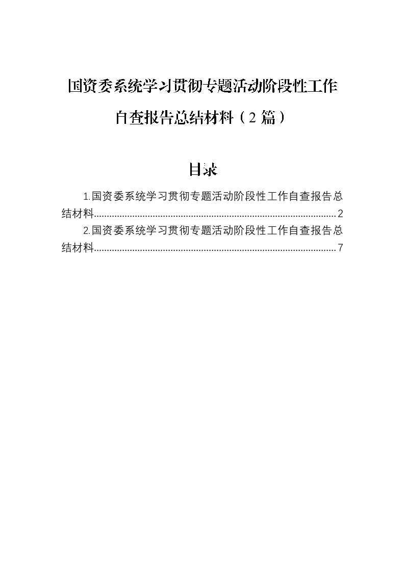 / 国资委系统学习贯彻专题活动阶段性工作自查报告总结材料(2篇)