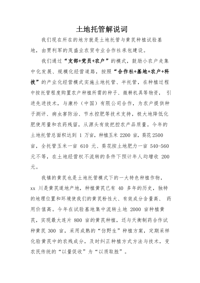 / 土地托管介绍词