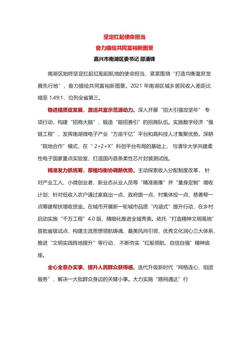 坚定扛起使命担当奋力描绘共同富裕新图景