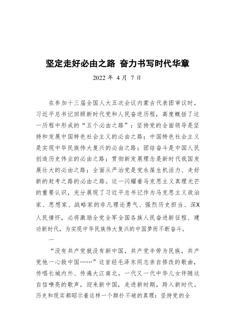 / 坚定走好必由之路 奋力书写时代华章(20220407)