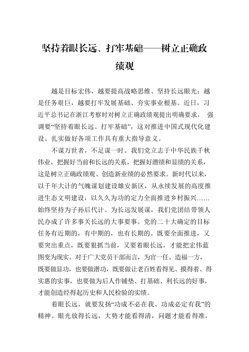/ 坚持着眼长远、打牢基础——树立正确政绩观