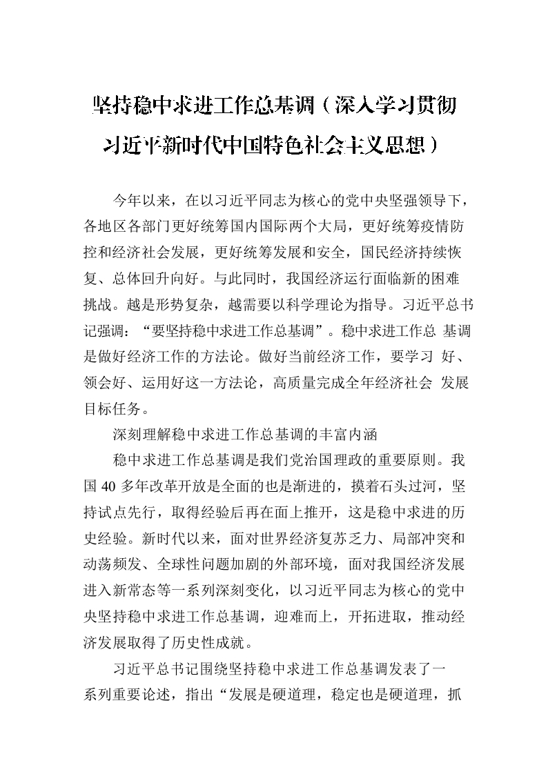坚持稳中求进工作总基调(深入学习贯彻习近平新时代中国特色社会主义思想)