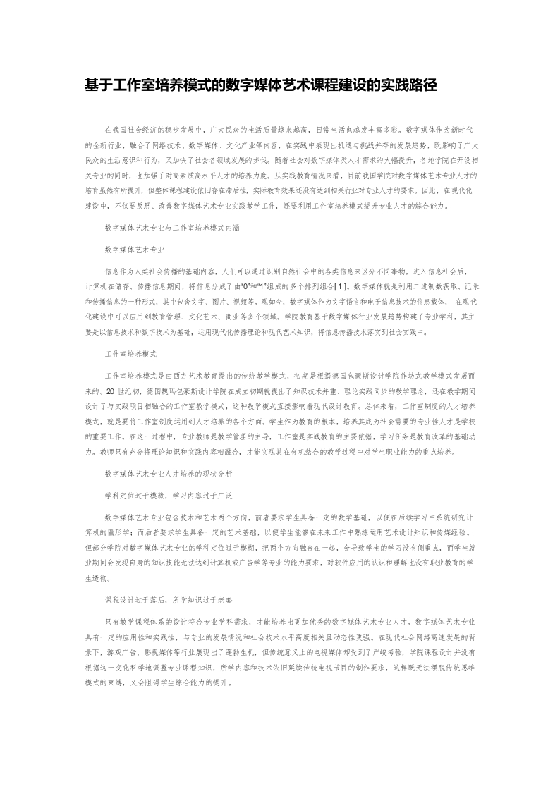 / 基于工作室培养模式的数字媒体艺术课程建设的实践路径