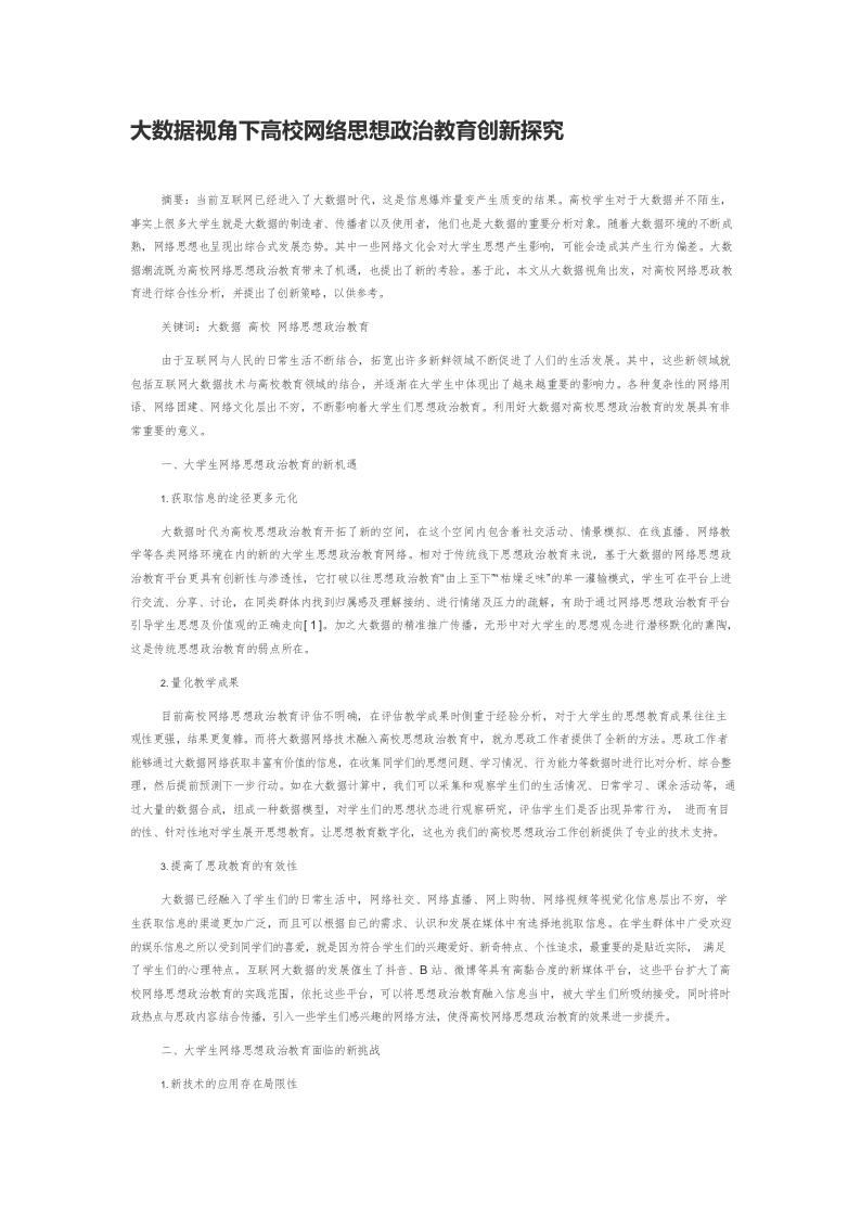 / 大数据视角下高校网络思想政治教育创新探究