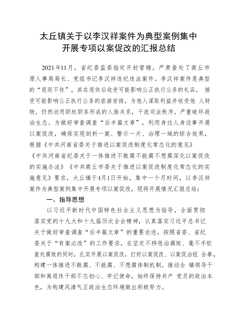 / 太丘镇关于李汉祥案件以案促改的总结汇报