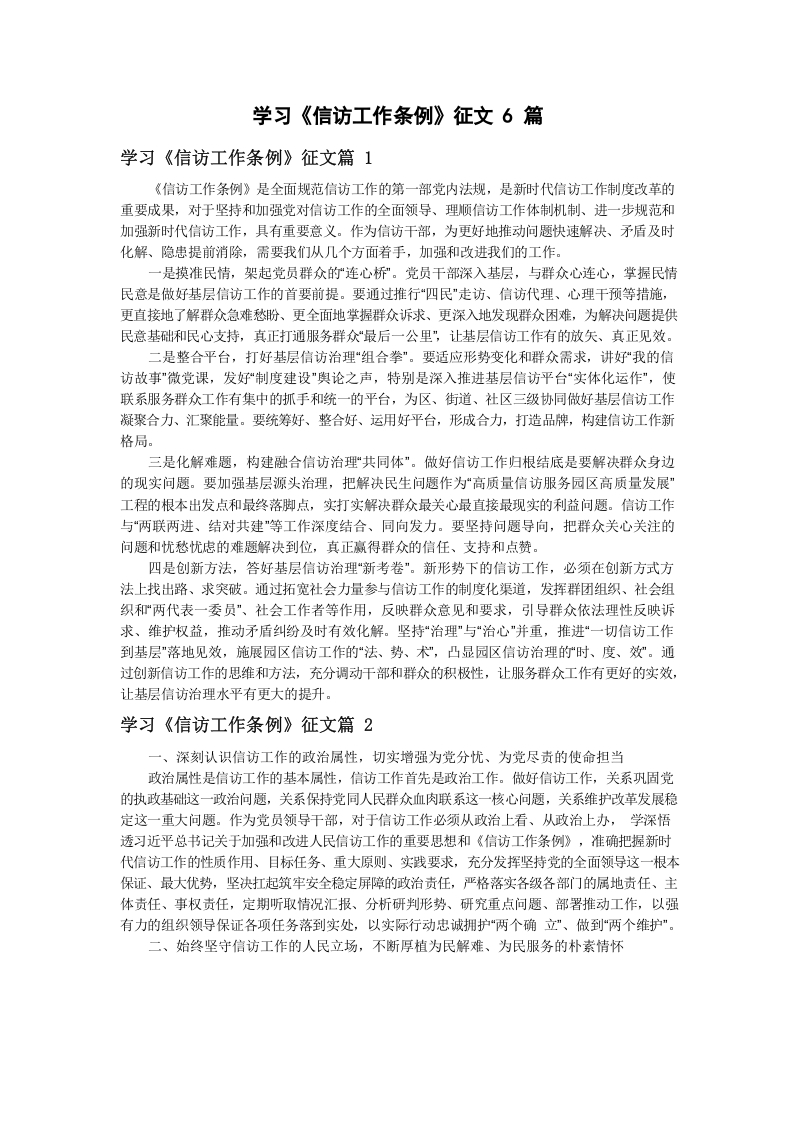 / 学习《信访工作条例》征文6篇