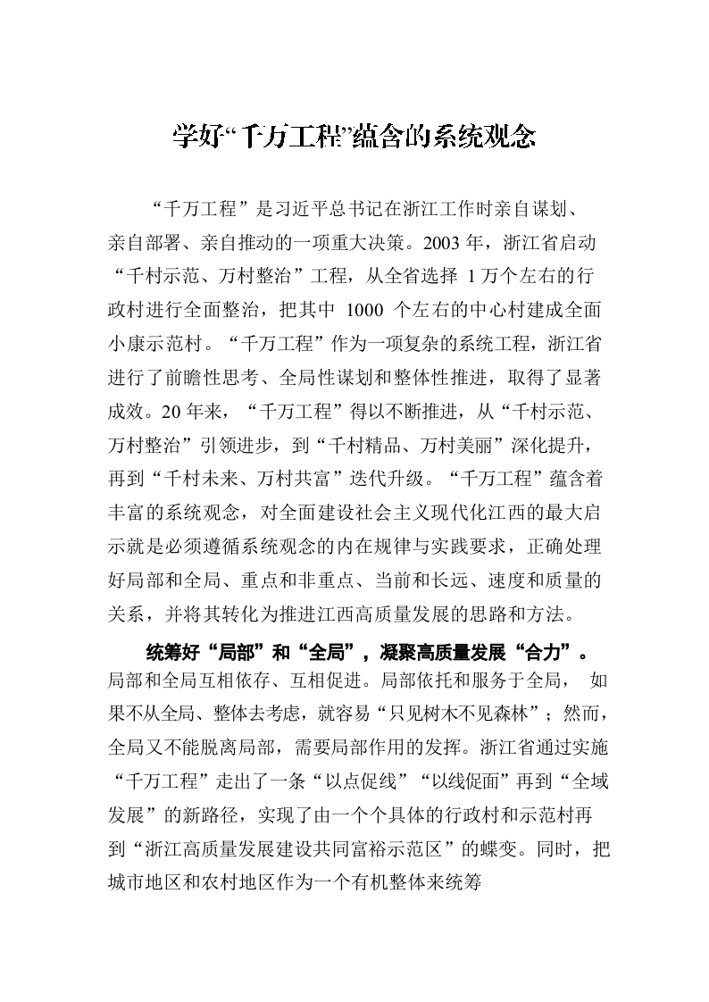 学好“千万工程”蕴含的系统观念