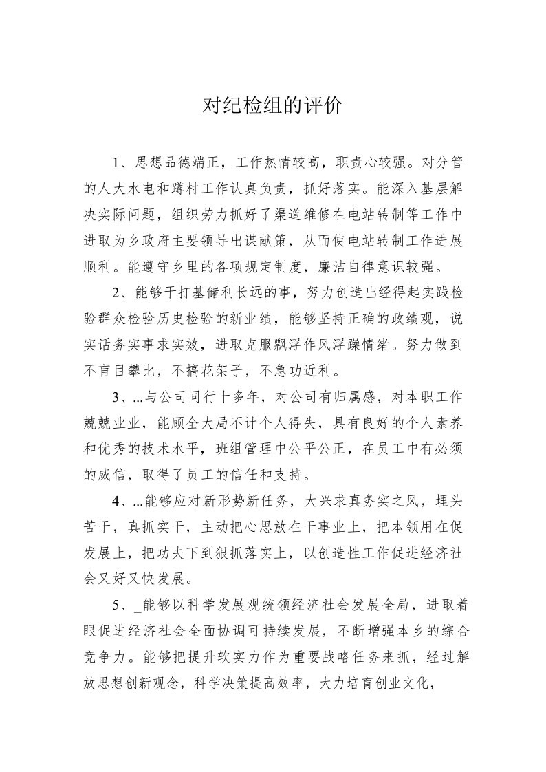 / 对纪检组的评价评语