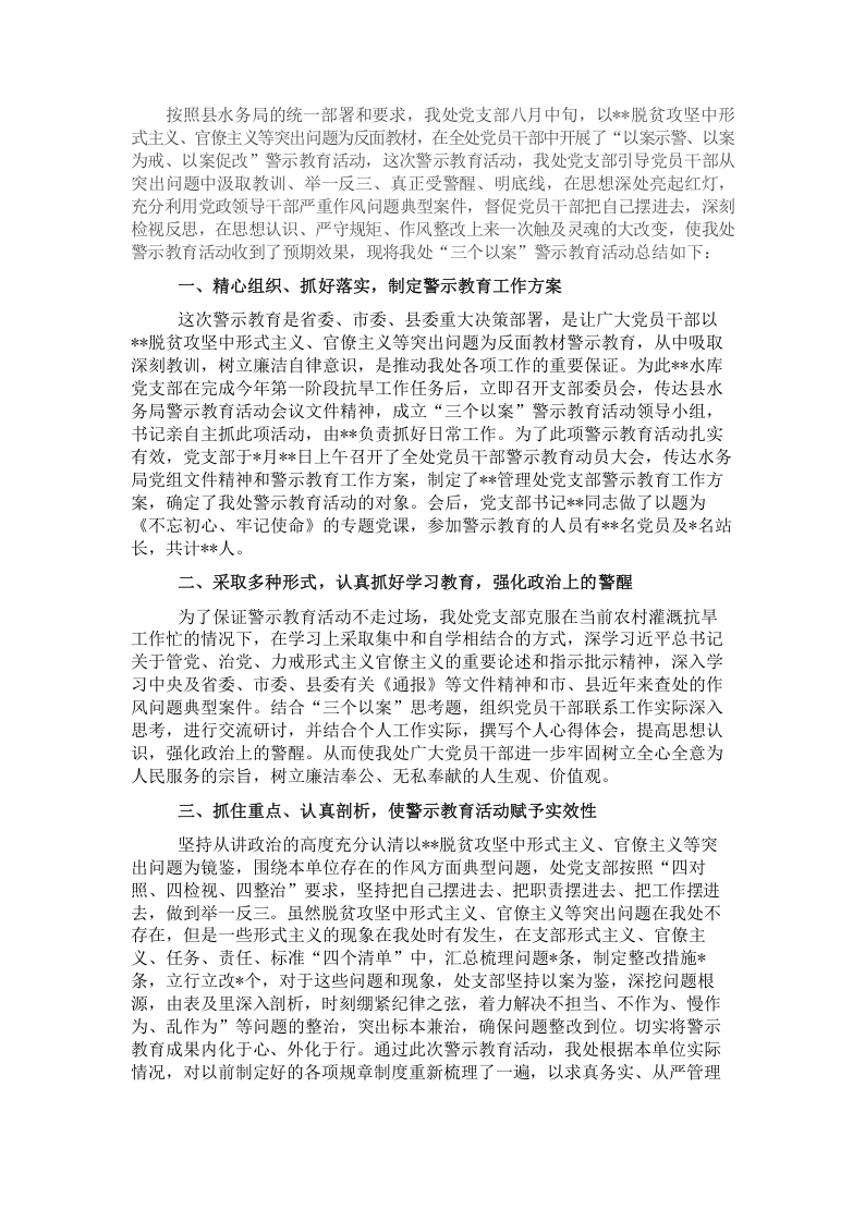 / 局机关“三个以案”警示教育工作开展情况总结