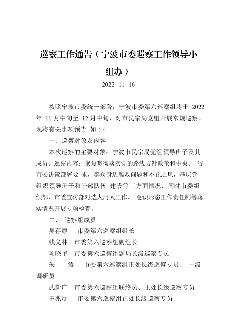 / 巡察工作通告(宁波市委巡察工作领导小组办)
