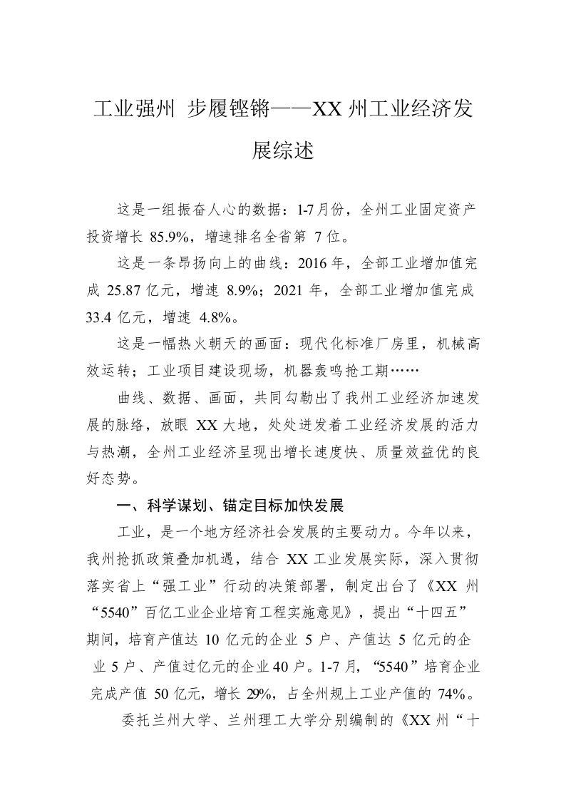 / 工业强州 步履铿锵——XX州工业经济发展综述(20221013)