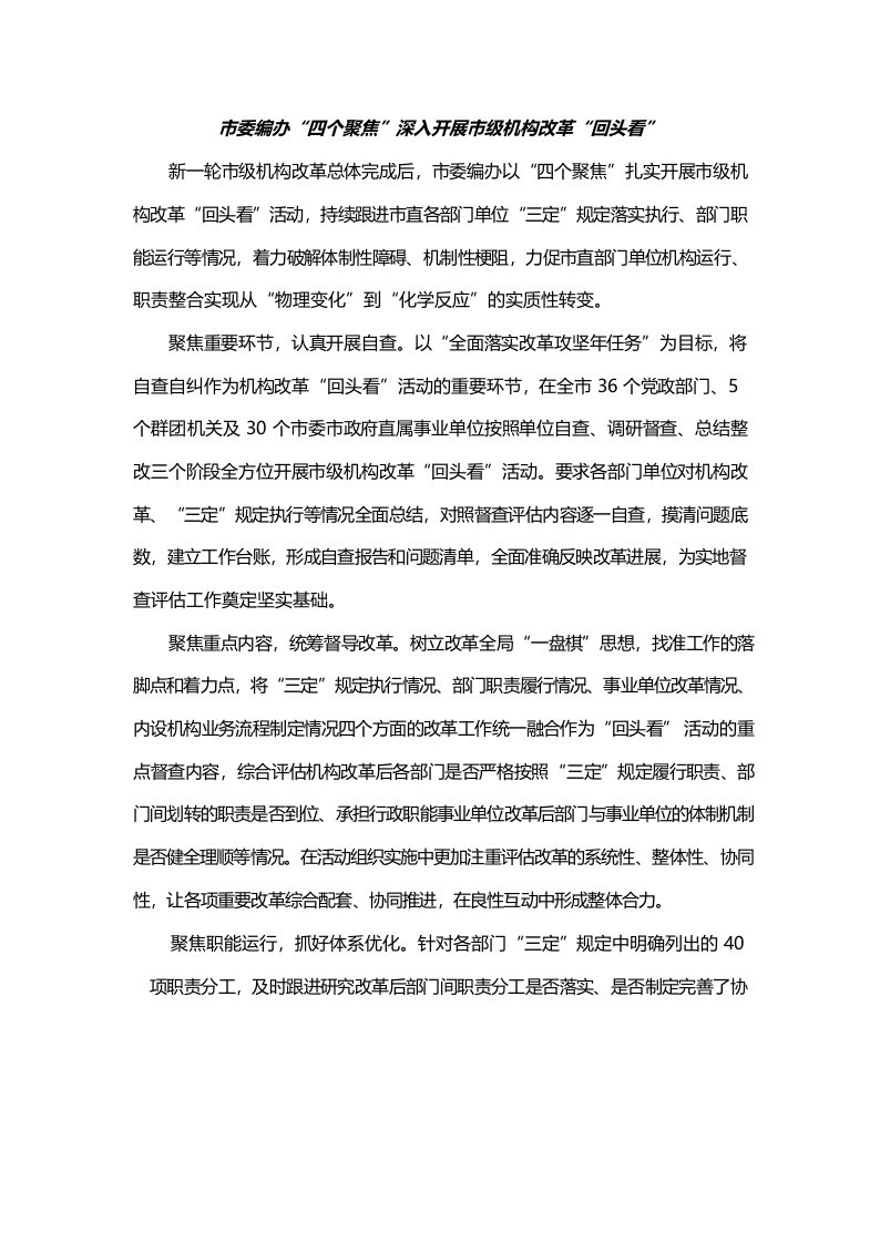 / 市委编办“四个聚焦”深入开展市级机构改革“回头看”