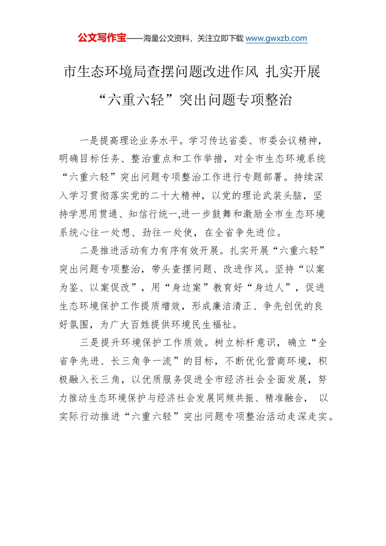 / 市生态环境局查摆问题改进作风 扎实开展“六重六轻”突出问题专项整治