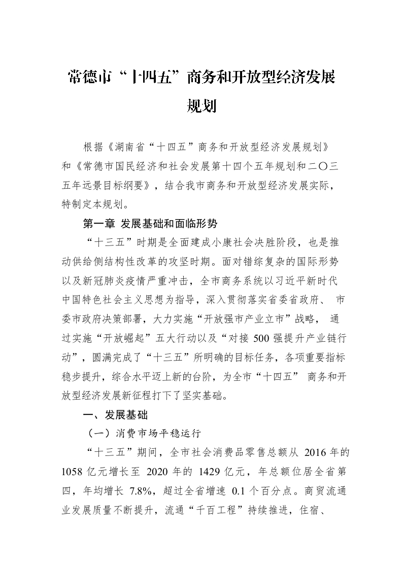 / 常德市“十四五”商务和开放型经济发展规划