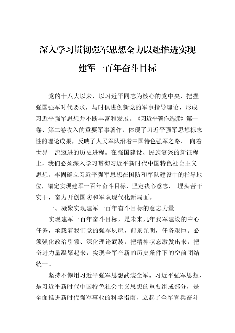 / 深入学习贯彻强军思想全力以赴推进实现建军一百年奋斗目标