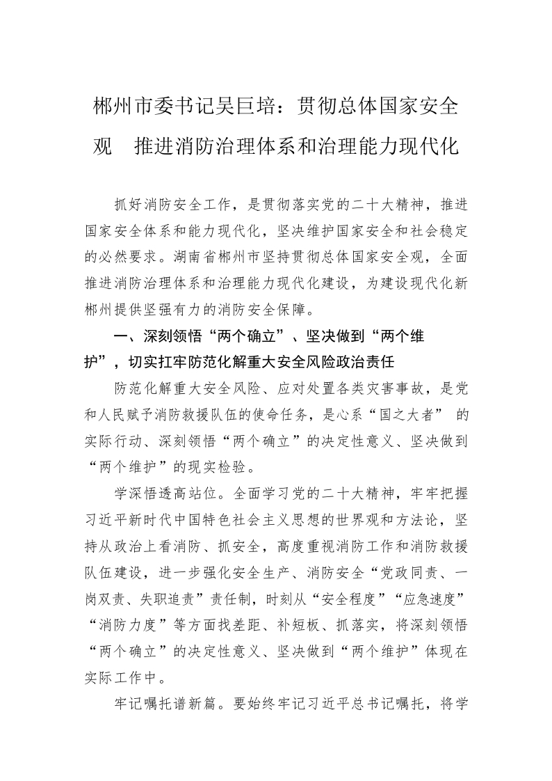 / 郴州市委书记吴巨培:贯彻总体国家安全观 推进消防治理体系和治理能力现代化(20221121)