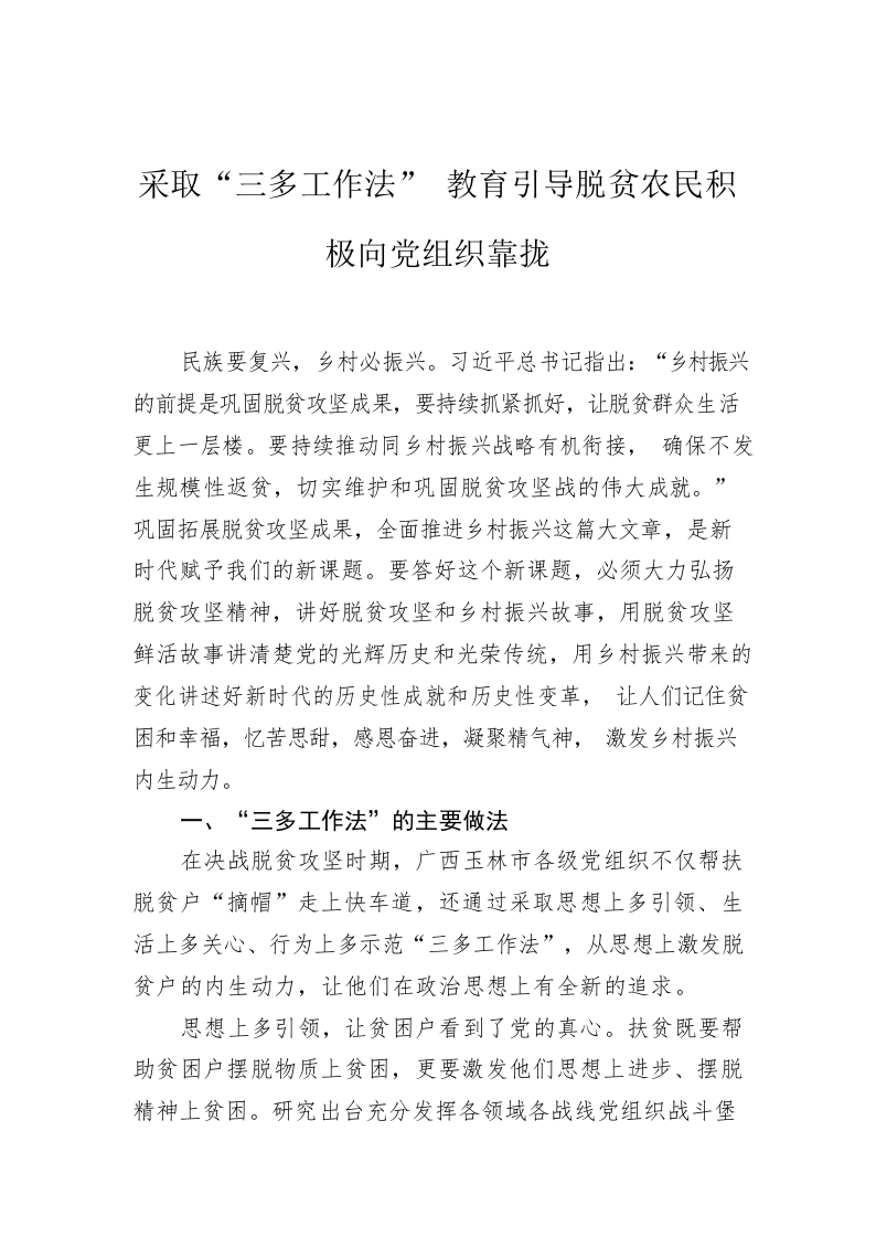/ 采取“三多工作法” 教育引导脱贫农民积极向党组织靠拢