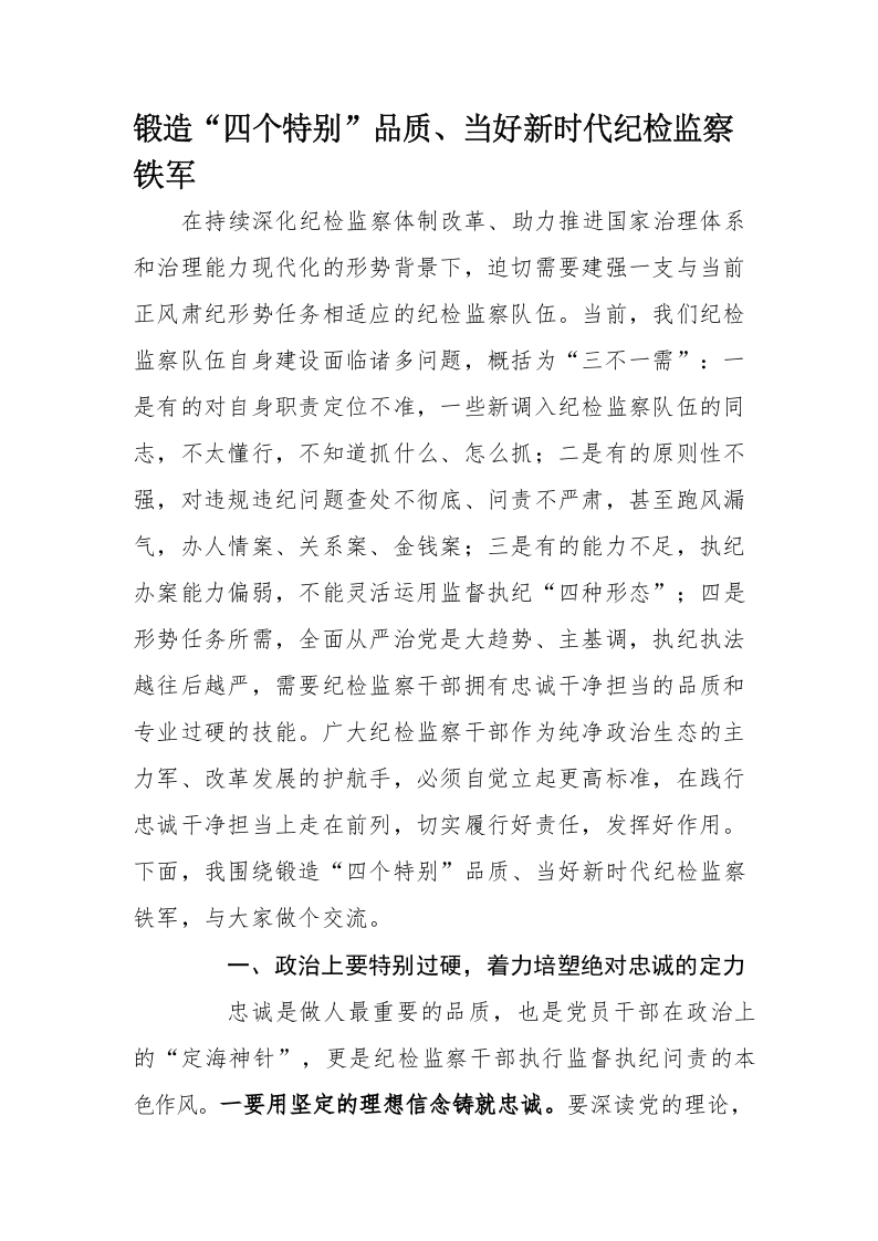 / 锻造“四个特别”品质、当好新时代纪检监察铁军