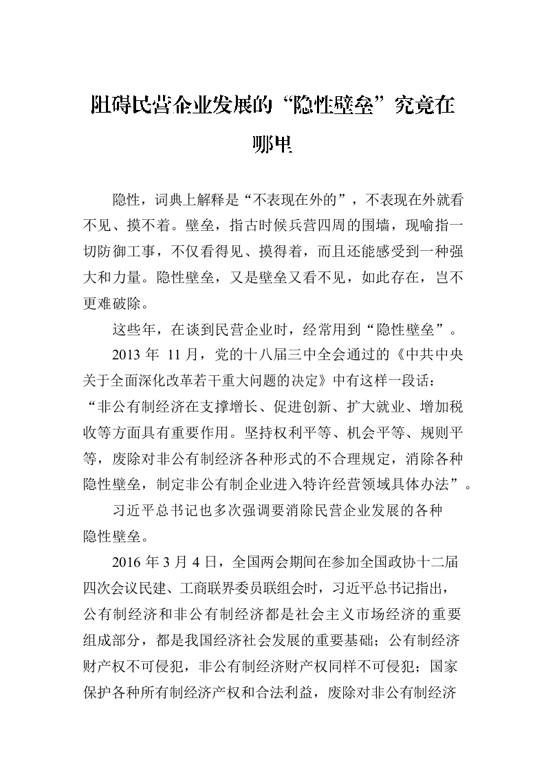 阻碍民营企业发展的“隐性壁垒”究竟在哪里