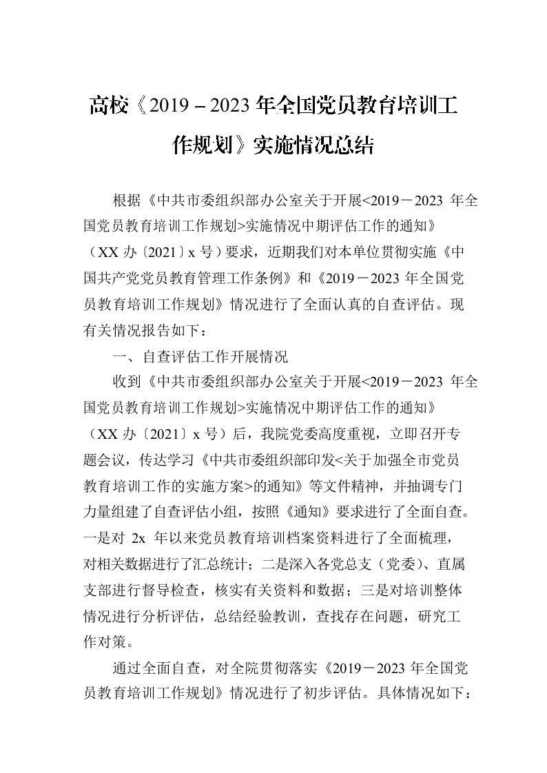 / 高校《2019-2023年全国党员教育培训工作规划》实施情况总结