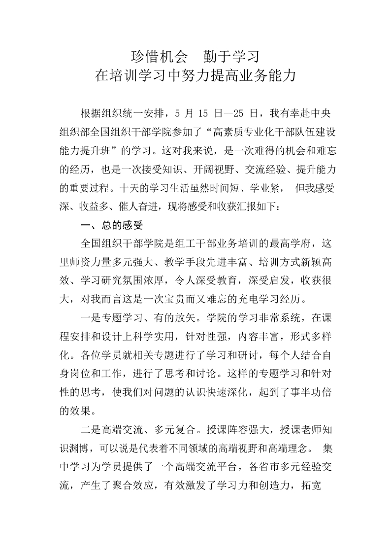 / 高素质专业化干部队伍培训总结