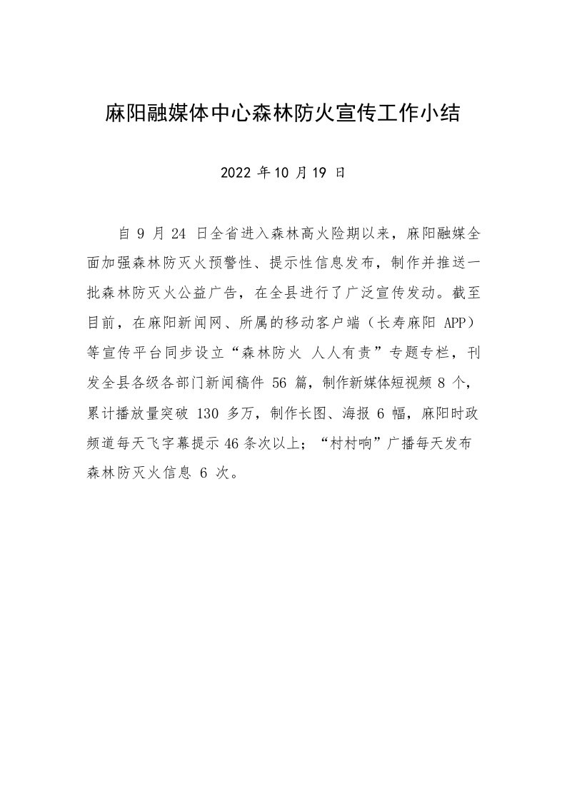/ 麻阳融媒体中心森林防火宣传工作小结